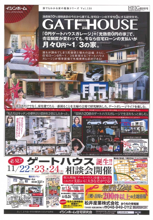 2014年11月24日(月)10:00~17:00 イシンホーム展示場 埼玉県三郷市天神2-72