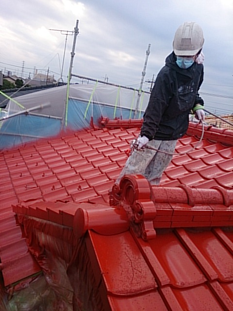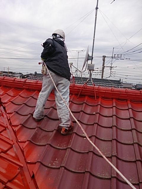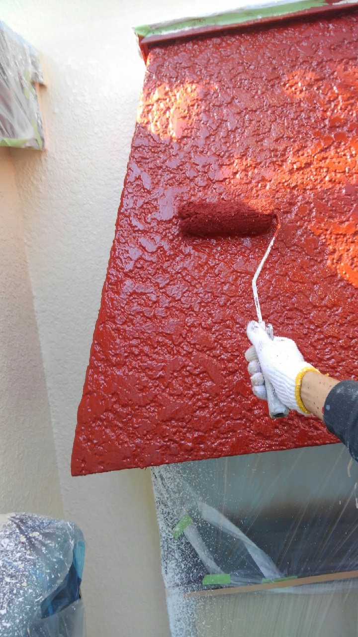 K様邸は屋根塗装工事です。下塗り中塗り上塗りの工程となっています。