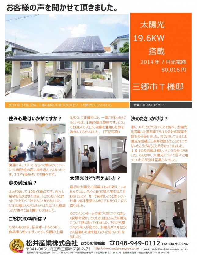 これから建築を考える方で太陽光に関して不安になる方もいらっしゃいます。実際にどうなのか…。ということで、実際に当社で大容量太陽光パネル付の新築、ローン0円住宅を建築したお客様に感想を聞かせていただきました。