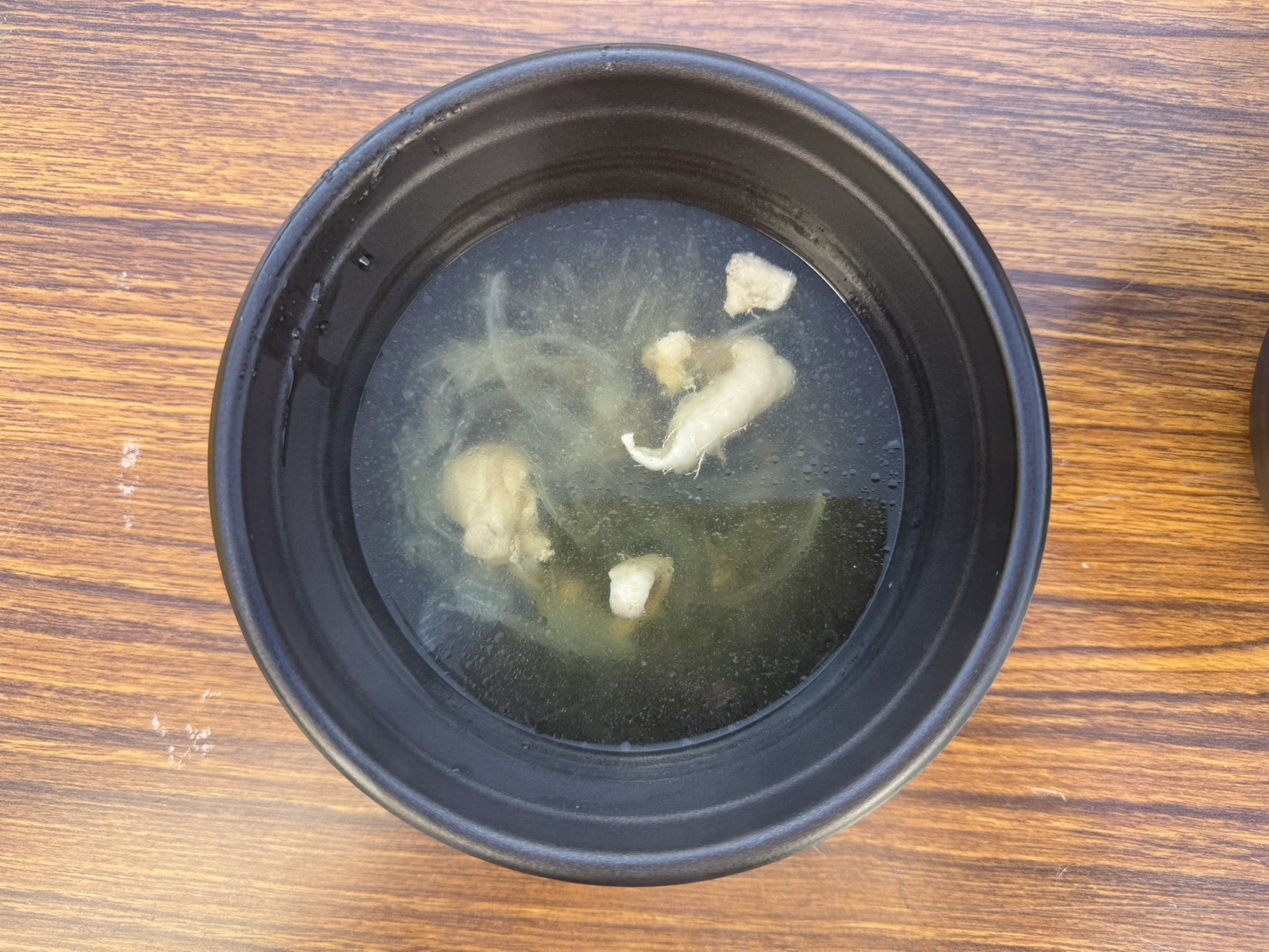 鶏の旨味が凝縮された、熱々のスープ。冷たい風が吹く中で飲むこの一杯は、まさに「五臓六腑に染み渡る」美味しさです。