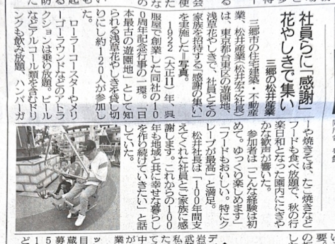去る11月1日(土)に実施しました松井産業グループ「従業員感謝の集い」につきまして、11月8日(土)付の埼玉新聞に取り上げていただきました。