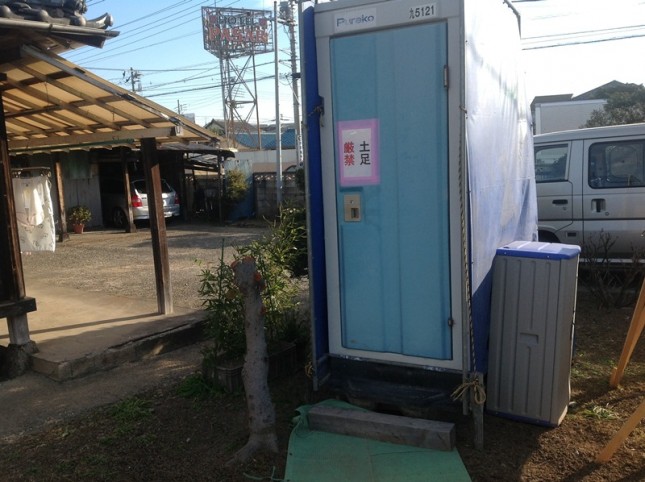 現場の清掃状況やトイレの使用状況もチェックします。トイレがきれいな現場は現場の環境整備もできるという考え方から来ています。ちなみにトイレは土足厳禁です。土足では汚れるもととなるので中にスリッパを置いています。