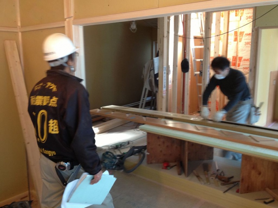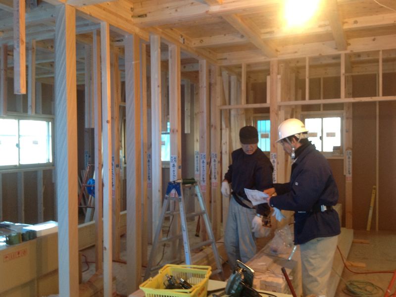 【埼玉県三郷市】安全品質パトロールを行いました。内部工事中の現場です。注文住宅ですので手作りでものづくりをしています。図面との食い違いが無いように定期的に現場に行ってチェックしています。