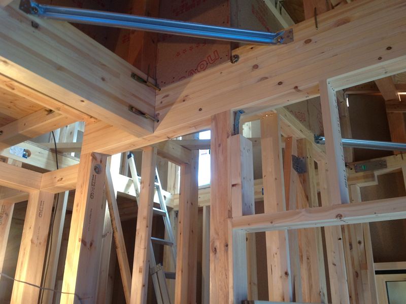 今回は構造用金物と耐震金物のチェックを行っています。それとともに現場の環境整備のチェックをしています。しっかりと整理整頓されているか,すべての仕事の基本ですので現場まかせにせずにチェックしています。