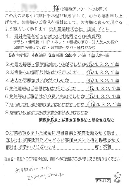 【お客様アンケート:S様】吉川店 賃貸 己ノ瀬
