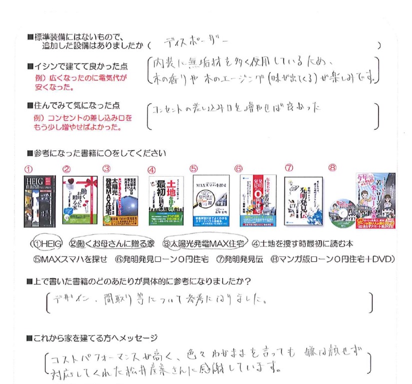 ■これから家を建てる方へのメッセージ「コストパフォーマンスが高く色々わがままをいっても嫌な顔せず対応してくれた松井産業さんに感謝しています」