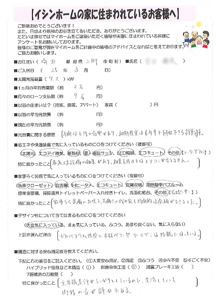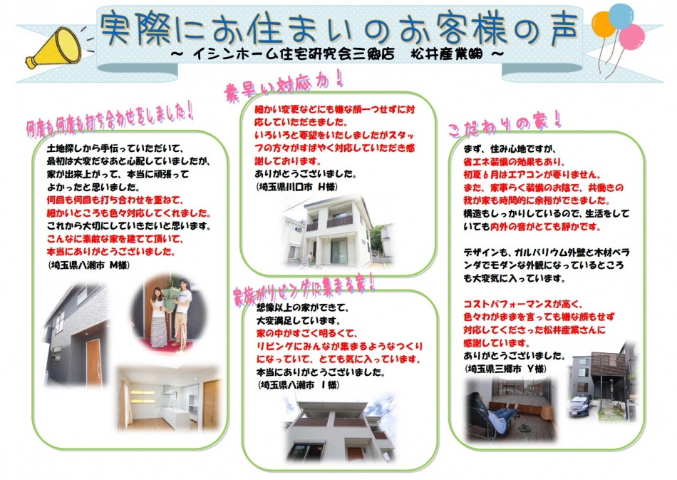 【埼玉県三郷市】イシンホーム注文住宅,Y様よりお住まいいただいてからの感想をお伺いしました。松井産業株式会社