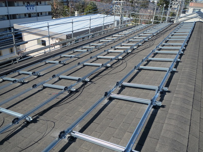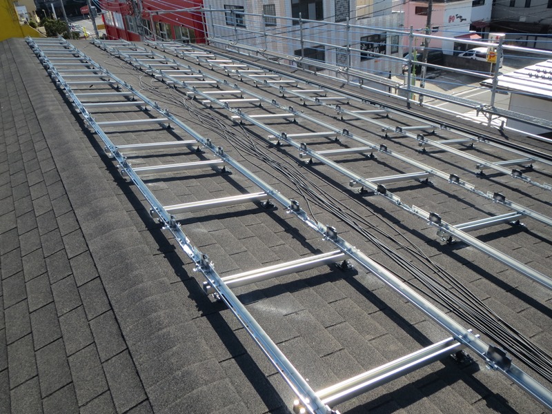 防水処理後に架台を取り付けて残すはパネル取付です。