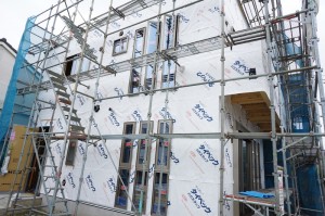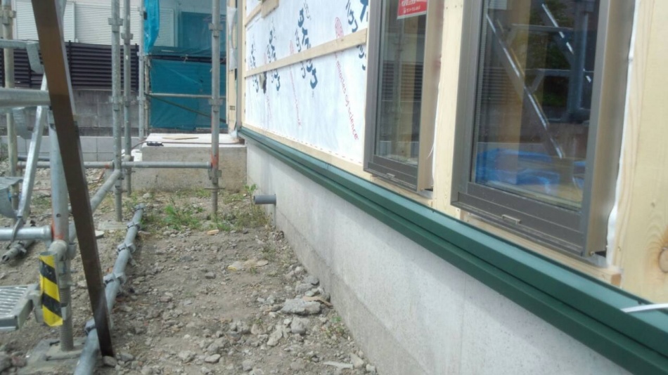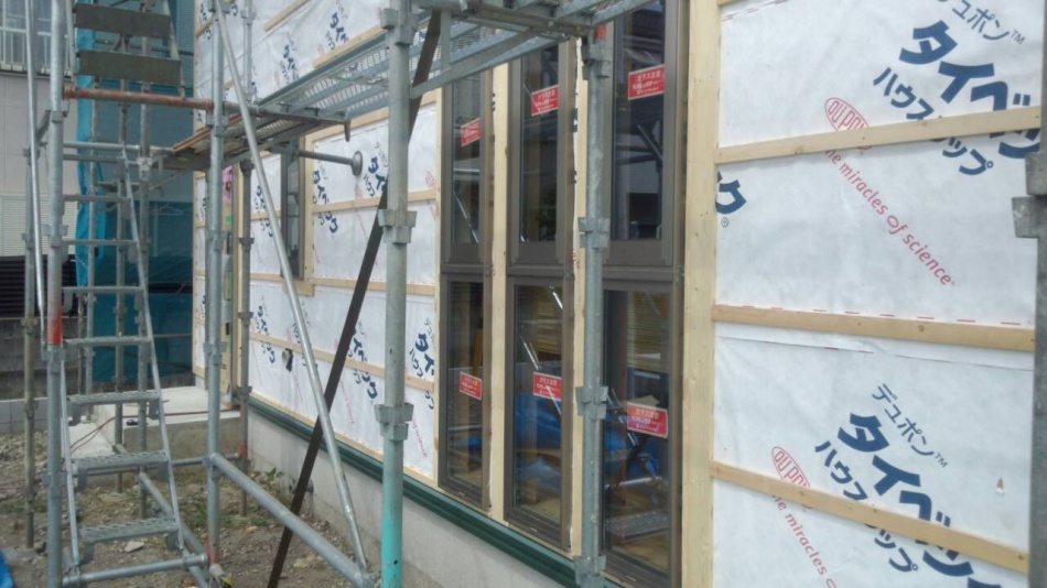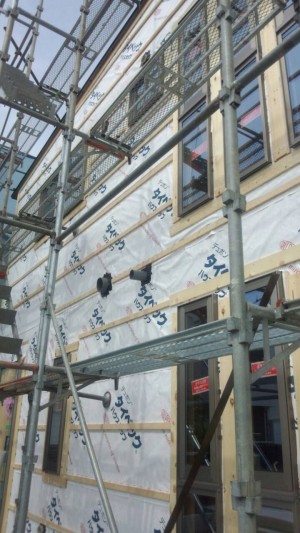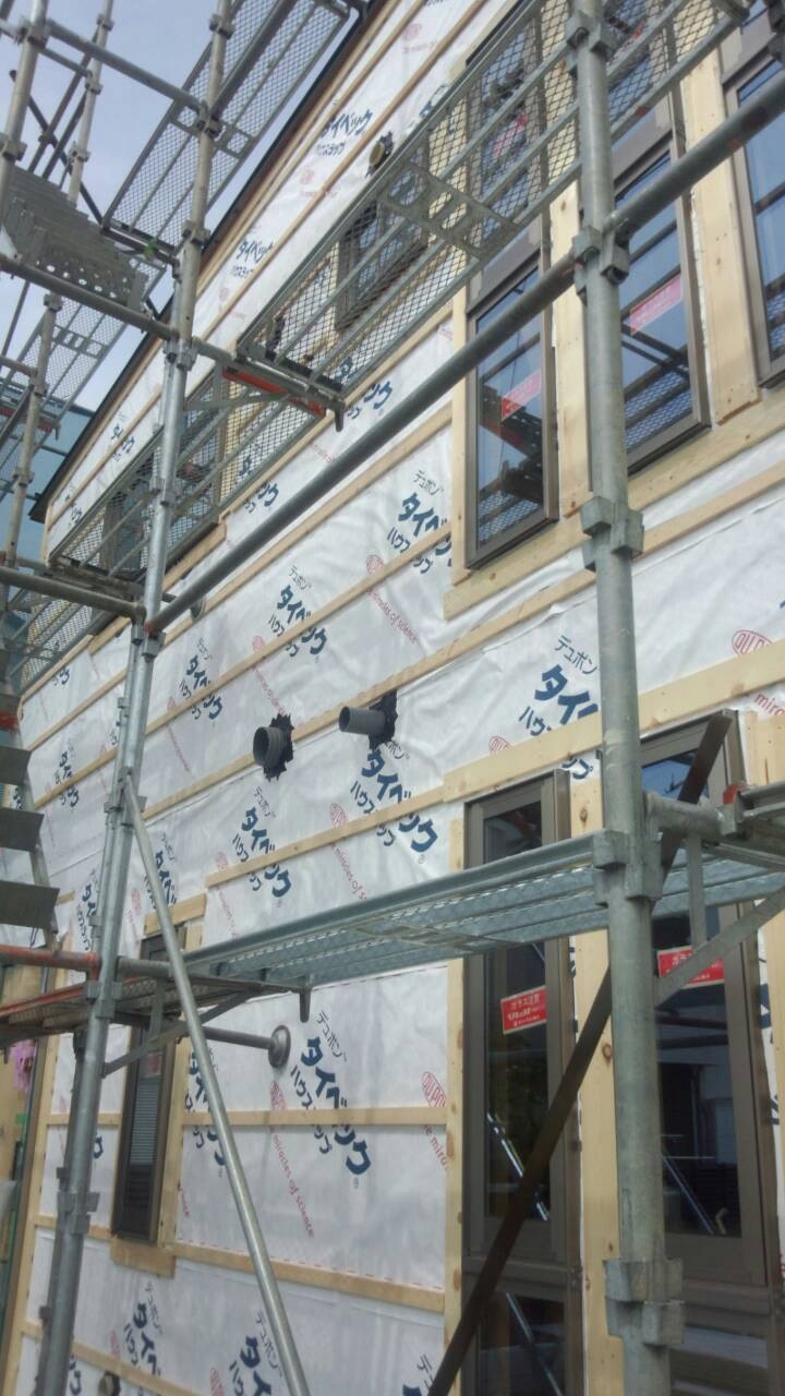 吉川分譲F棟外壁下地です。エアホール胴縁を使用しています。