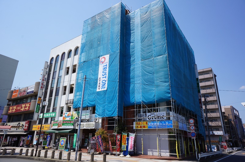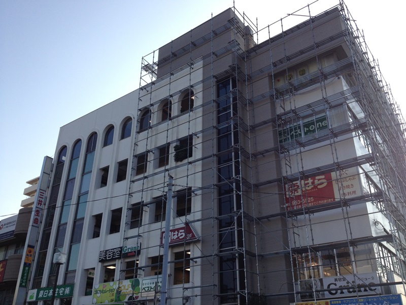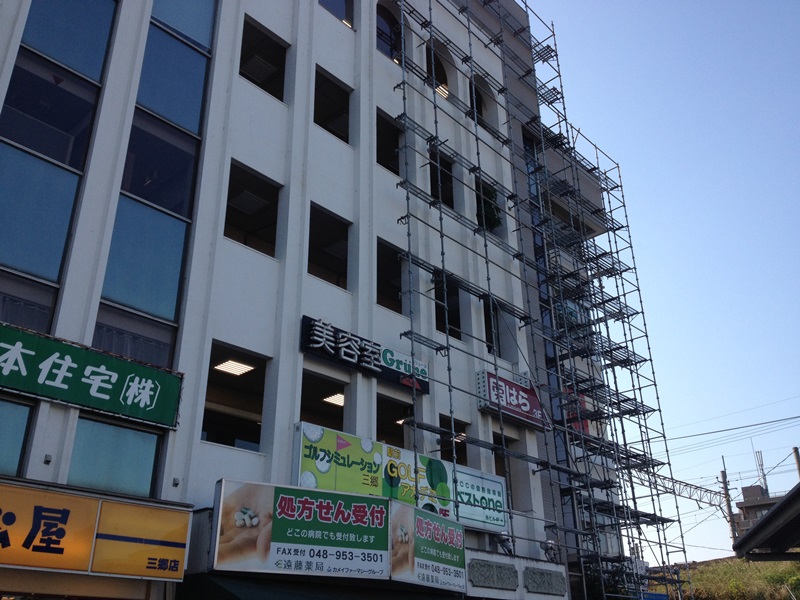 三郷市の店舗ビル改装工事ですが足場シートが外れて外観がわかるようになりました。