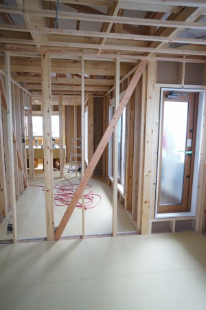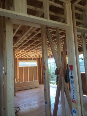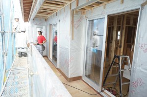 あれ?サッシってこんなところに打ち合わせした?高さは?・・・サッシが入る前は、下地も枠もないので、実際の高さや大きさもなかなか想像つきにくいもの。そこで今後の施工内容をお伝えし最終的な仕上がりをお伝えして初めて”こうなるのか”と先が見えてきたりします。お忙しいかとは思いますがこの段階での確認はとても大切なのでご協力お願いします。