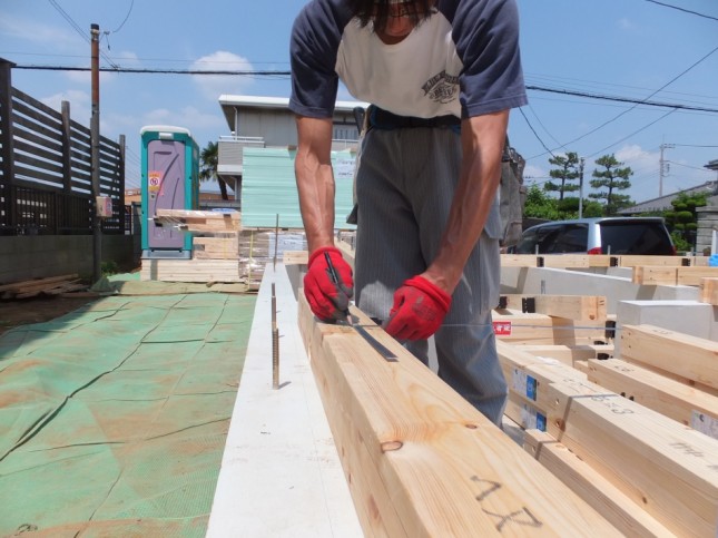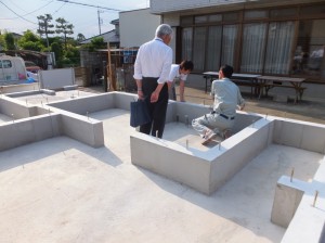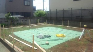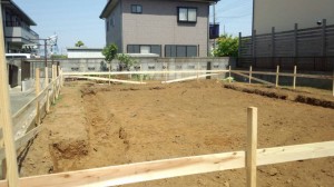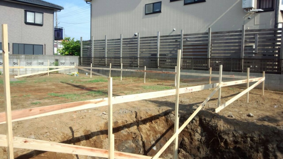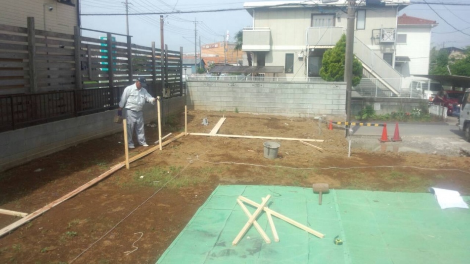 遣り方を基準として基礎の位置や高さを決定し,工事が進んでいきます。とても大切な工程です。