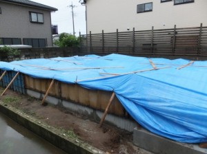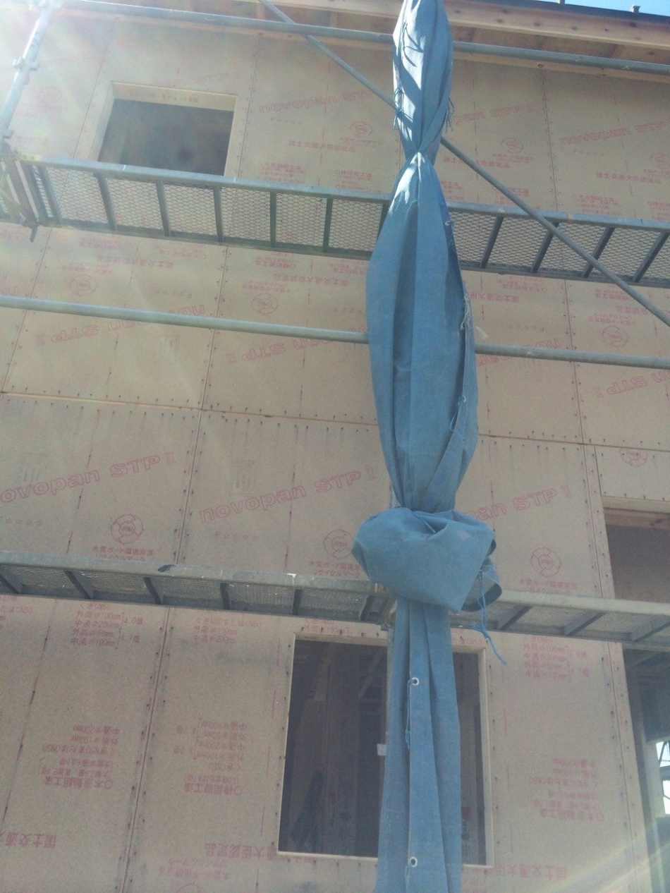 7月上旬,台風接近のため現場の安全対策でシートをたたみました。