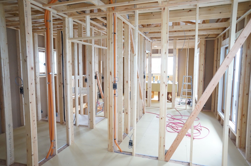 次回は断熱材の吹付前の電気配線の確認になります。たのしみ。byなか。