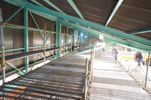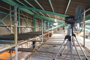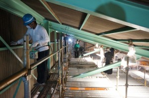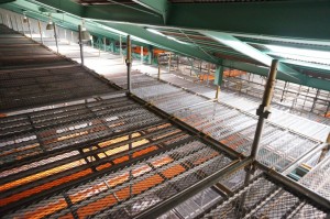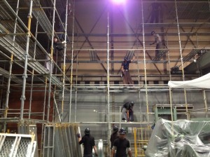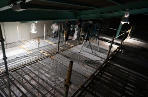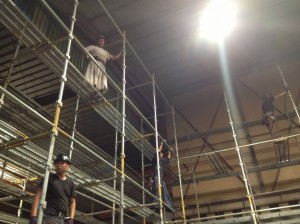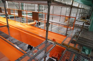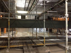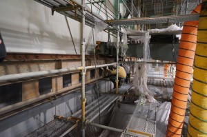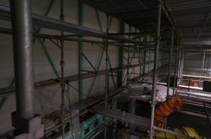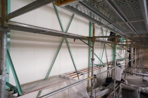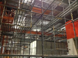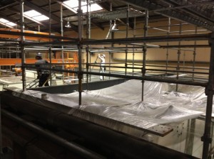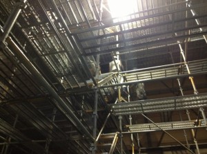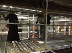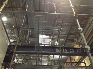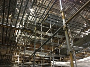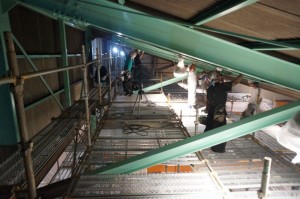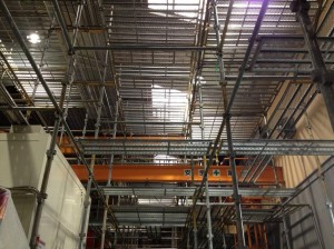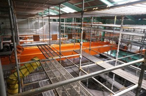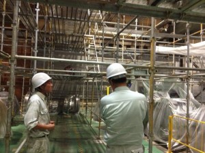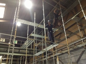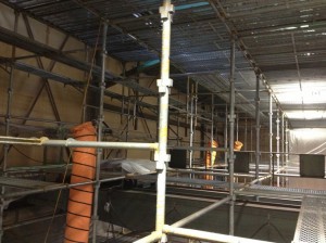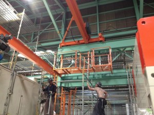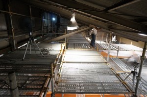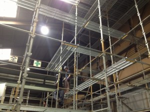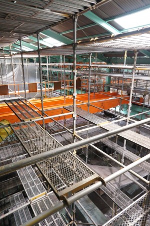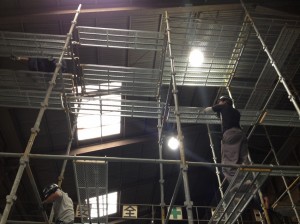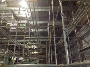 工場内なので機材を破損しないように慎重に足場解体に取り掛かります。