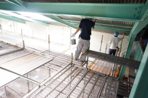 機械の養生や職人の安全性を考えて足場をしっかりと組み塗装にとりかかります。