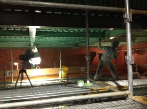 A様工場内部塗装とケレン作業を行っています。順調にすすんでいます。