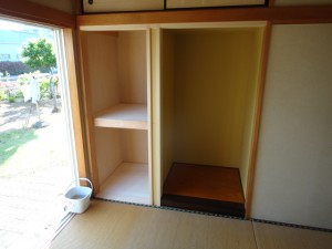 日頃よりお付き合いさせていただいているお客様からのご要望で既存の和室押入れを仏壇置き場と物入れに変更をしました。