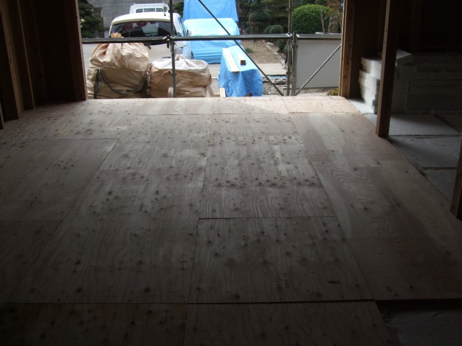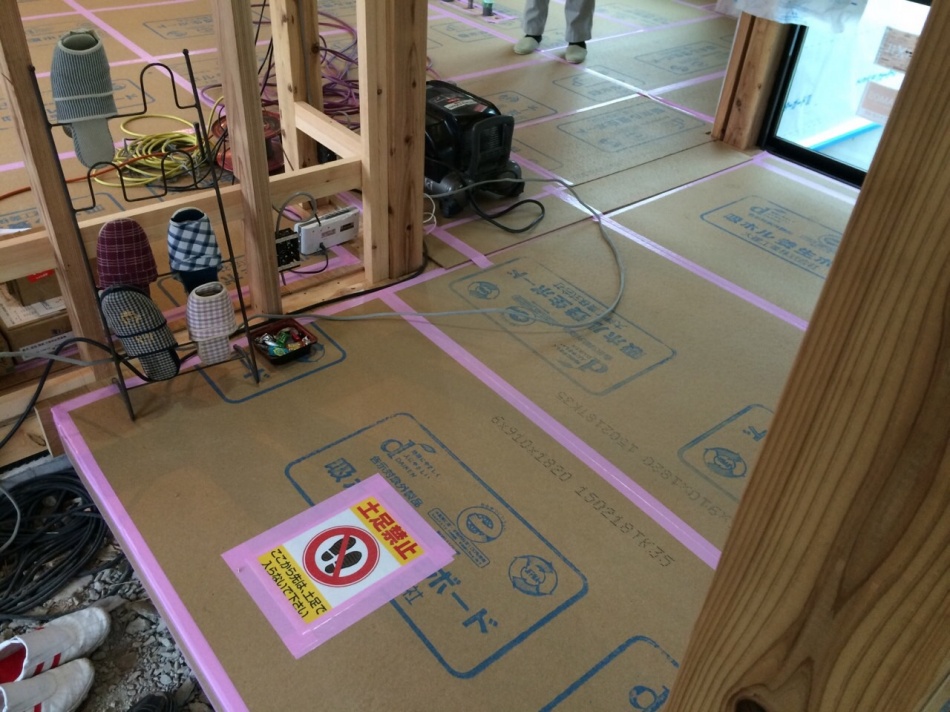 三郷市のS様邸注文住宅 床断熱と合板貼りの状況です。
