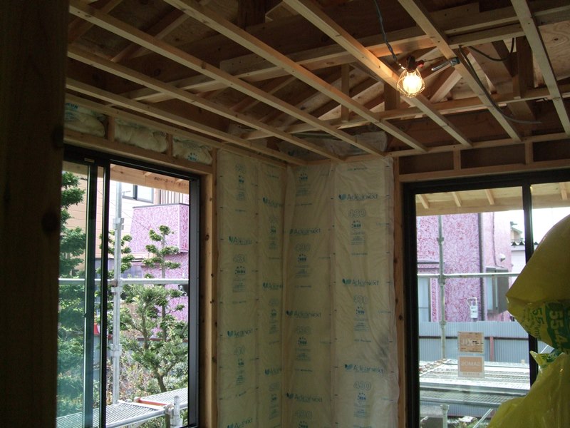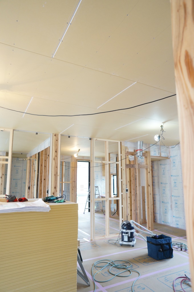 三郷市で施工中のS様邸注文住宅は、天井ボードの取り付けが完了しておりました。