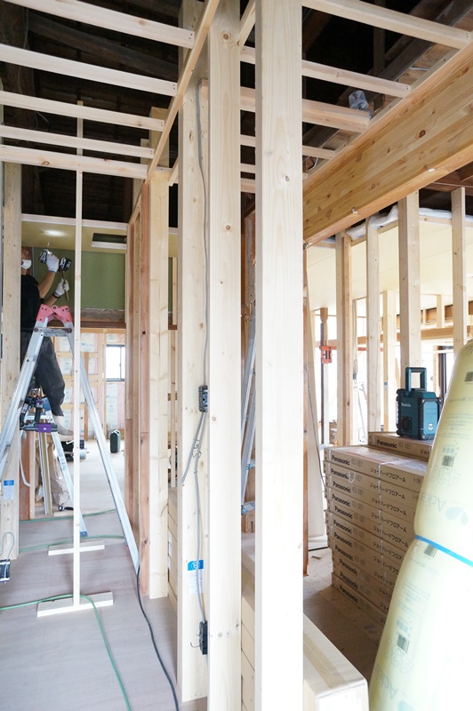 三郷市のA様邸は木工事中,同時に電気配線の工事もはじまりました。