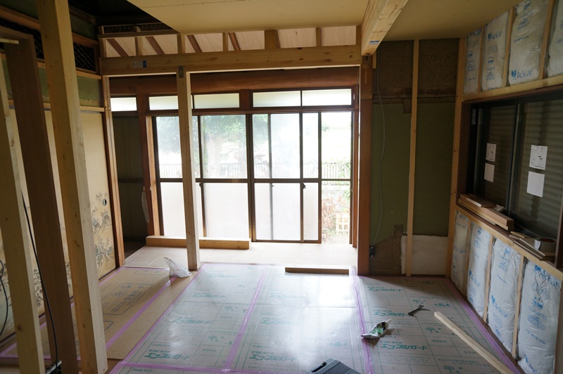 三郷市A様邸改修工事は大工木工事が完了しました。現在は内装クロス工事の段階に入っています。クロス工事,水回り設備搬入をしクリーニングを行いお引渡しとなります。