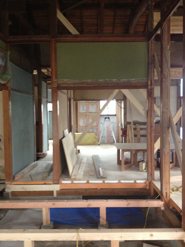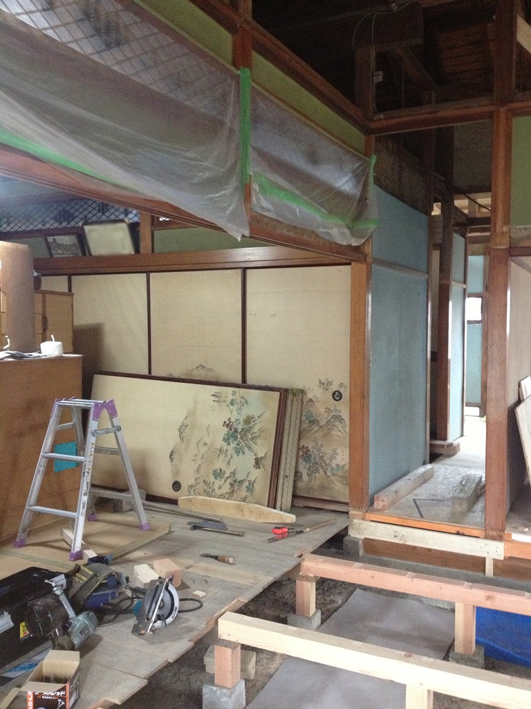床を全部取り去り,大引きから全部組み直しを行っています。