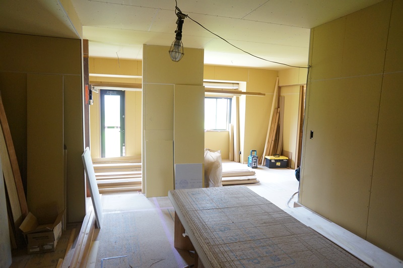 この後には水回り設備を搬入設置し床の養生を外し和室の建具工事を行いクリーニングに入ります。お引渡しまでもう少しです。