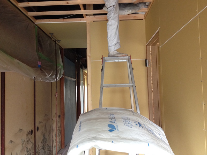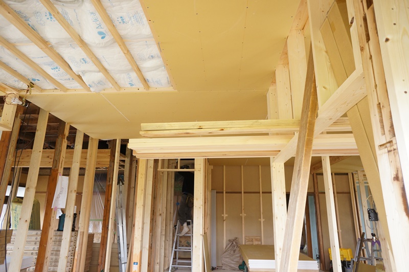 【三郷市】A様全面改修工事,天井ボード施工と屋根工事がはじまりました。