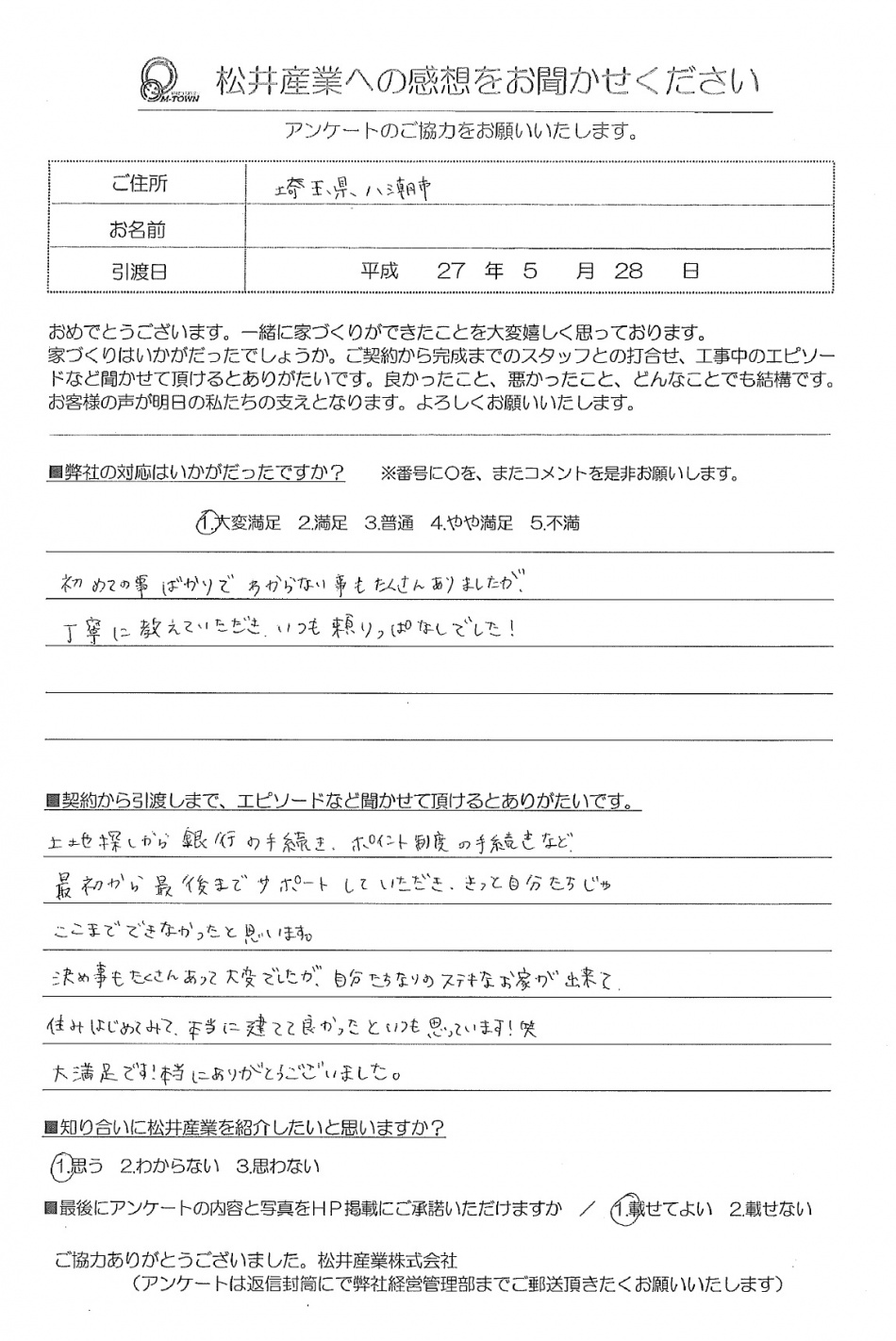 八潮市のM様からアンケートをいただきましたのでご報告させていただきます。