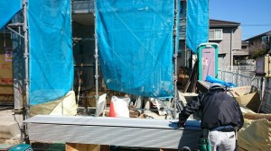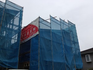 八潮市M様邸シートがかかり,看板シートも取り付けました。
