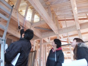 Mさま、先日現場の説明会にお時間をとって頂きありがとうございました。これまでは図面上で色々と打合せをしてまいりましたが、実際に建物が建ちどうだったでしょうか。これから断熱材の吹付工事でと進んでいきますので、またお知らせいたします。 Byなか。