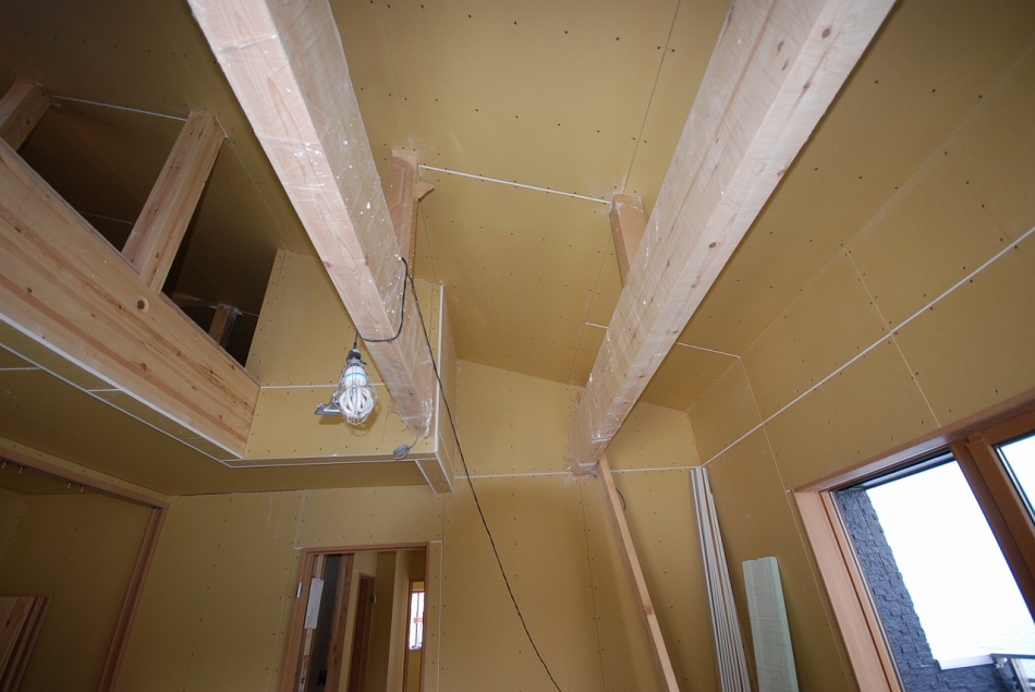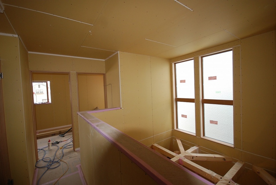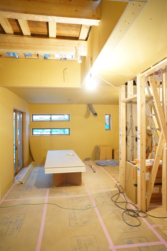 埼玉県八潮市M様邸内装工事中の現場です。内部ボードを貼っています。