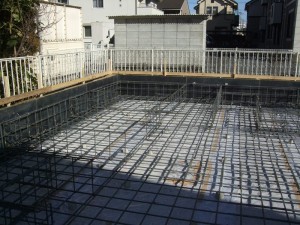 1,000棟以上を施工している、その道30年以上のベテラン社員達でチェックしていきます。図面に基づいて、配筋間隔、鉄筋径、かぶり厚やスペーサーブロックの間隔、設置方法などを丁寧に、漏れがないように確認していきます。