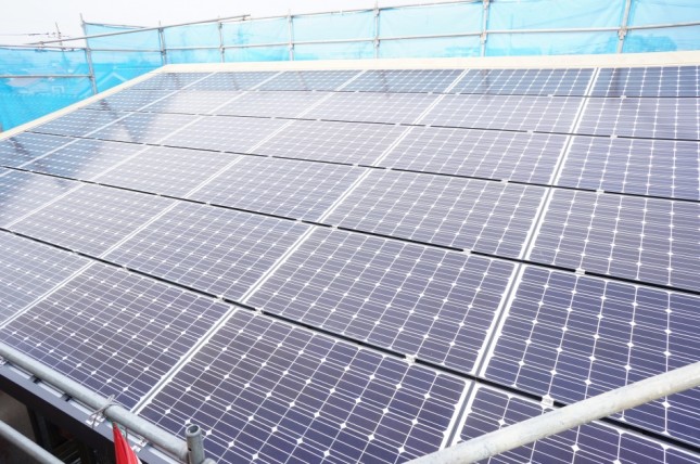 【八潮市M様】屋根いっぱいに太陽光がのっています。