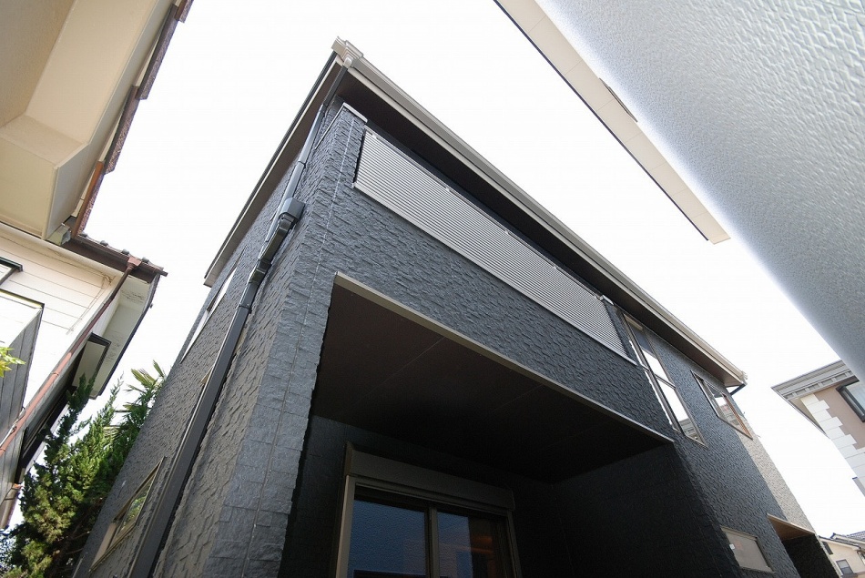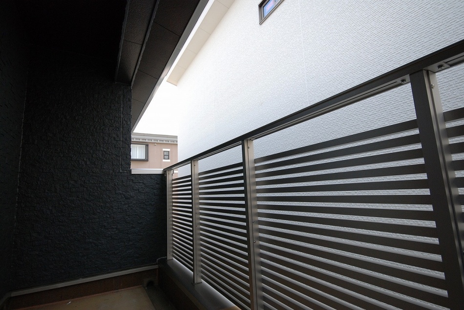 八潮市M様邸,足場が外れ外観がわかるようになりました。また手摺がつきました。黒にシルバーの手摺を採用したことでスタイリッシュな仕上がりとなり高級感もあります。