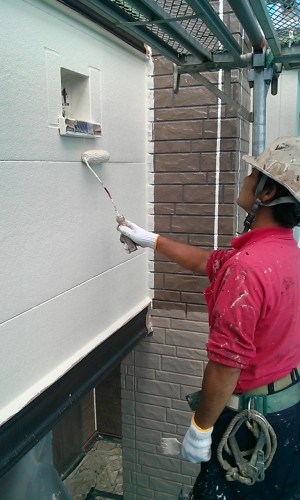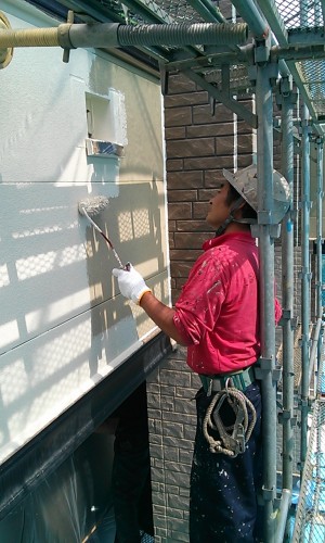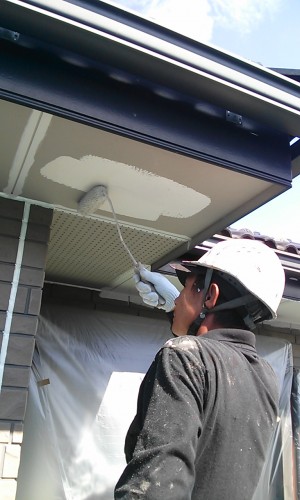 軒天塗装⇒外壁塗装⇒下塗り⇒中塗り⇒上塗り