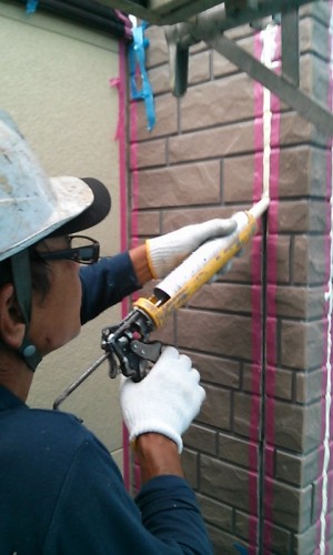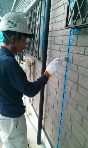 シール工事⇒シール撤去⇒プライマー塗布⇒シール打ち込み⇒ヘラ押さえ