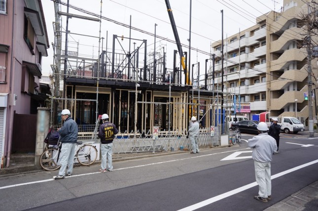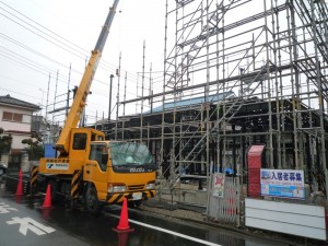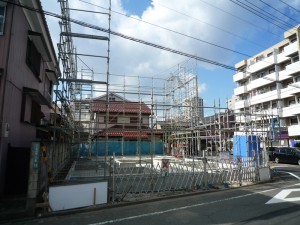古いアパートを解体してからの新築です。新しい建物がカタチになっていく様子は楽しいですね。
