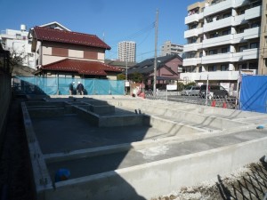 H様マンション,型枠を撤去した後の基礎コンクリートです。