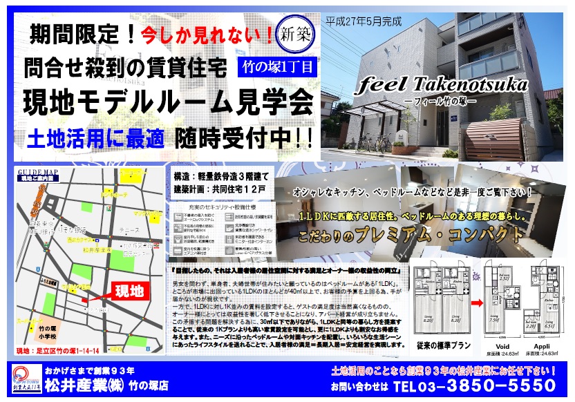【東京都足立区:オーナー様必見のお部屋】即満室の賃貸経営。完成後即満室になった新築賃貸住宅を是非一度ご覧下さい!新築賃貸住宅の内部見学会を行っています。松井産業株式会社