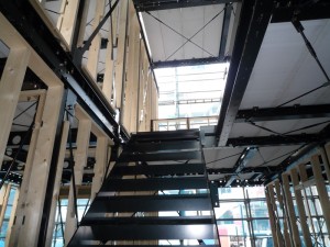 天井下地を組み共用部分の工事も順調に進んでいます。