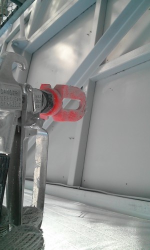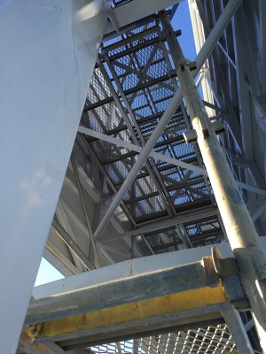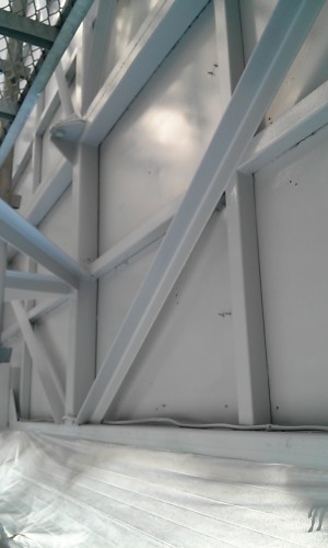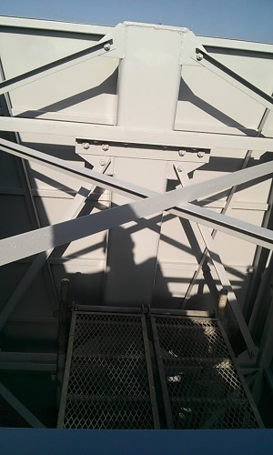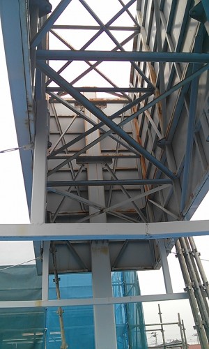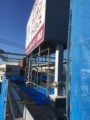 【三郷市】埼玉トヨタ三郷店様屋上看板塔の裏面の塗装工事です。