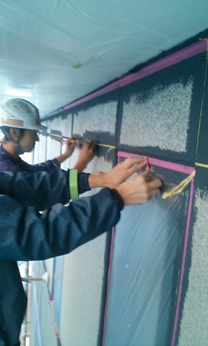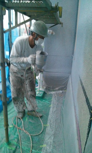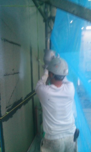 吹き付け塗装をいたしますので近隣にご迷惑がかからないように吹き付け方法や時間,連絡など現場の状況と様子をパトロールにてチェックいたしました。