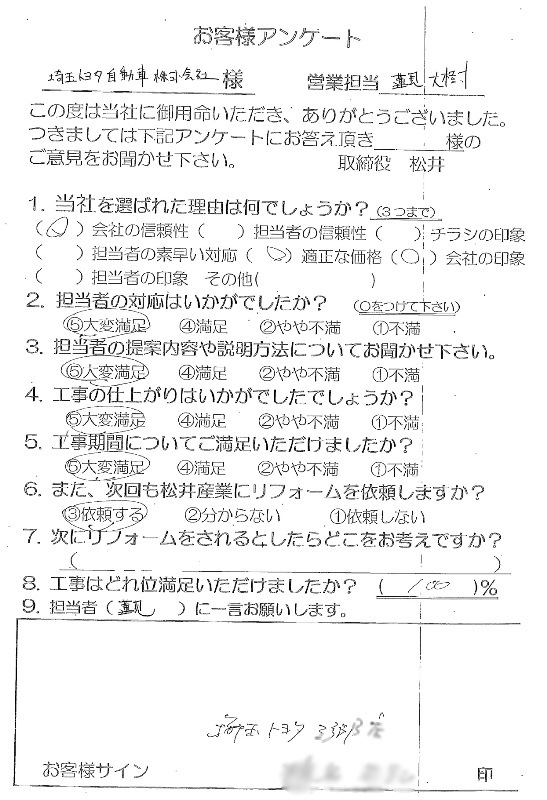 埼玉トヨタ三郷店様工事が完了しお客様アンケートをいただきました。