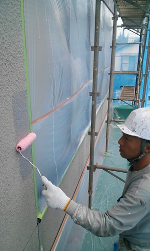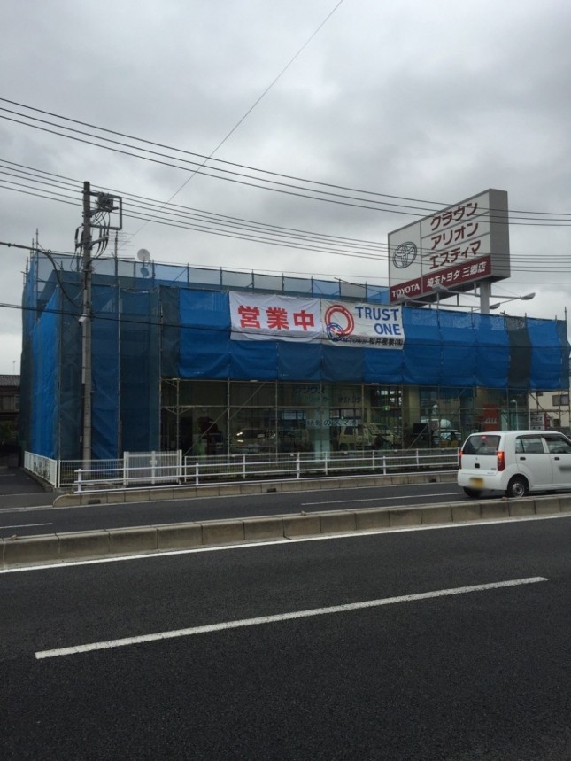 埼玉トヨタ三郷店様外部塗装工事の様子です。