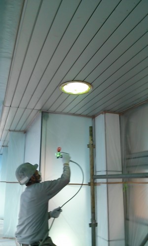 居住用・非居住用に関わらず,内部塗装工事は養生と清掃が大事ですが,大切な機械や品物がある工場やショールームの場合は特に気をつかいます。