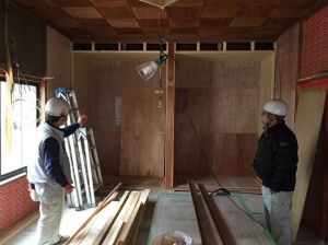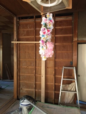 見事な神棚がありまして,一時的に取り外しを行うことになりましたがしっかり頑丈につくってありましたので外すのが大変。