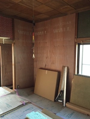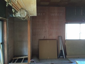 ガーディアンウォールとは天井と床を解体することなく,壁の解体のみで柱の柱頭,柱脚の金物が設置でき,かつ,構造合板張りで壁倍率6.7kn/mを達成するすごい壁です。筋交いですと圧縮の力に対抗するでしょうが引っ張りの力には当然弱く,さらに昔の筋交いは筋交い金物もありませんし薄い筋交い(今時は45㍉昔の薄い筋交いは13㍉)では筋交いとしての効果はもともと考えられません。
