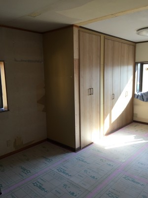 三郷市U様邸間仕切り,押入れ部分を取り払い部屋を広くする工事を行っています。